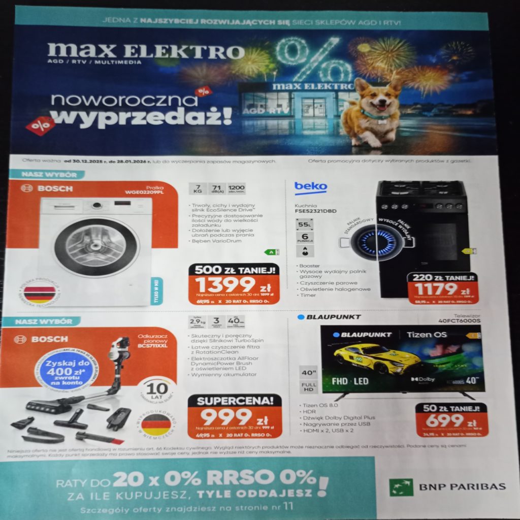 W nadchodzącym Nowym Roku nie zwalniamy tempa i na start chcemy Wam zaproponować nowe, specjalne promocje na 2026! Lodówki, pralki, suszarki, zmywarki, telewizory, z rabatami nawet do 600 (!) zł! Razem rozpocznijmy ten rok z rozmachem i w wielkim stylu 😉